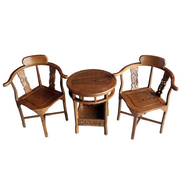 紅木三角椅鷄翅木圈椅中式休閒太師椅茶幾組閤圓幾情人椅三件套三件套椅子 組閤桌椅 實木桌椅組閤 休閒桌椅 23WZ