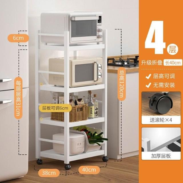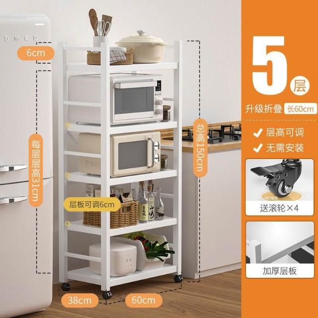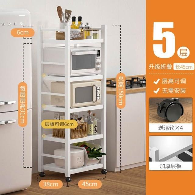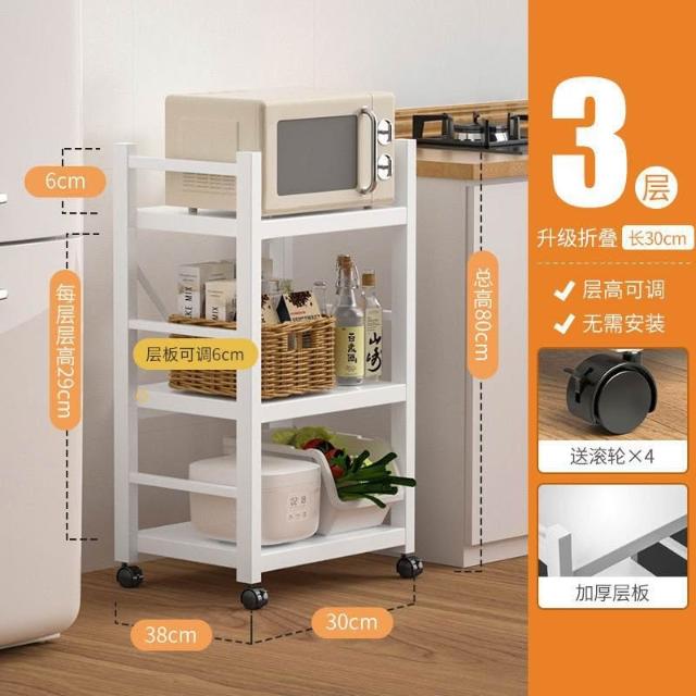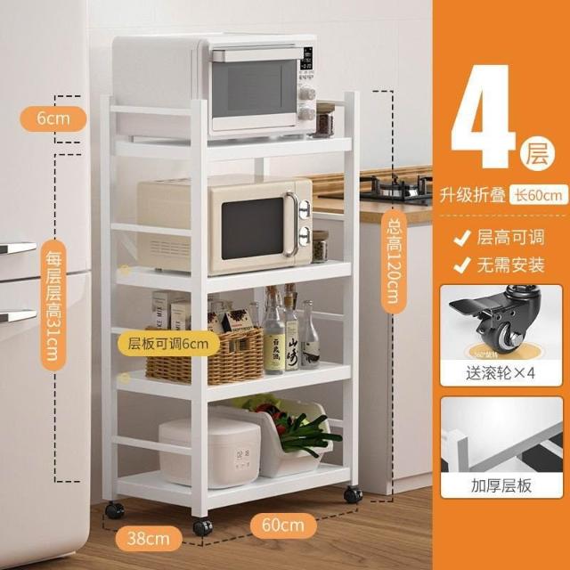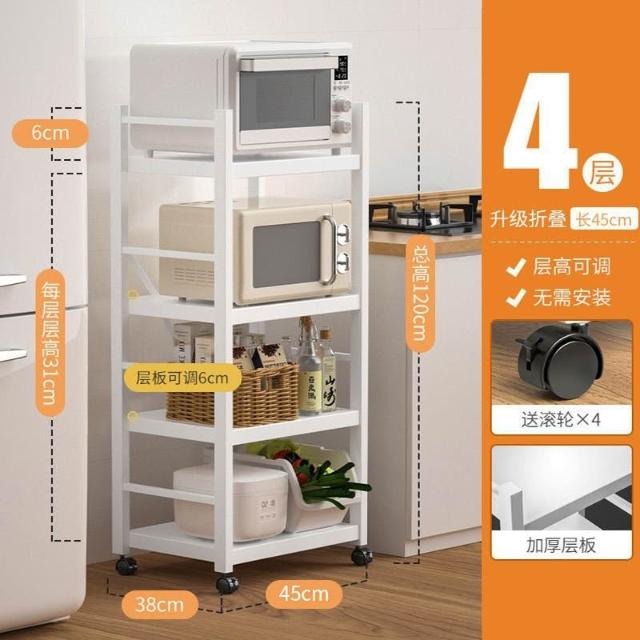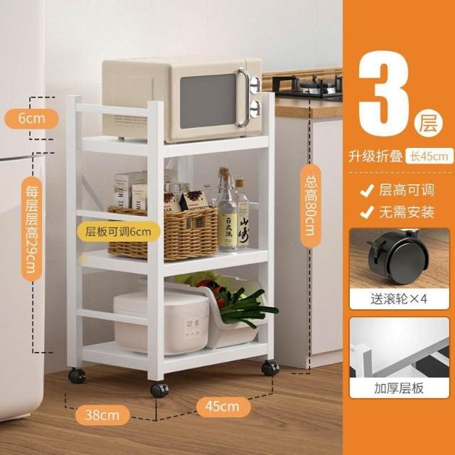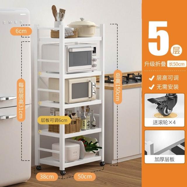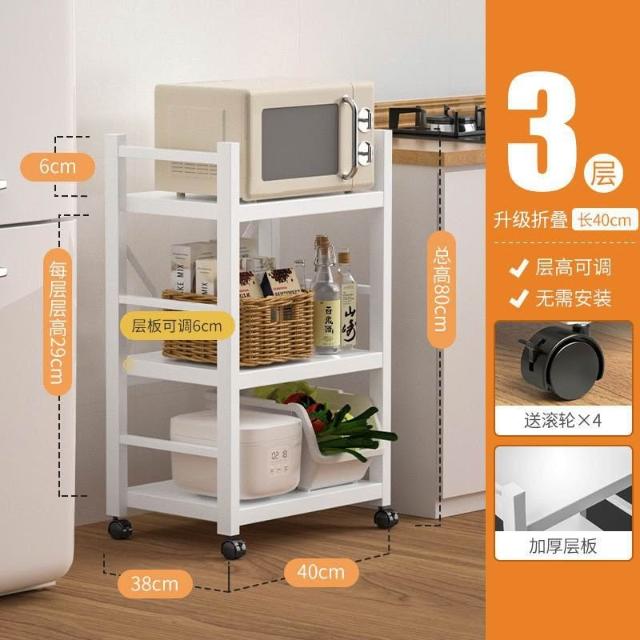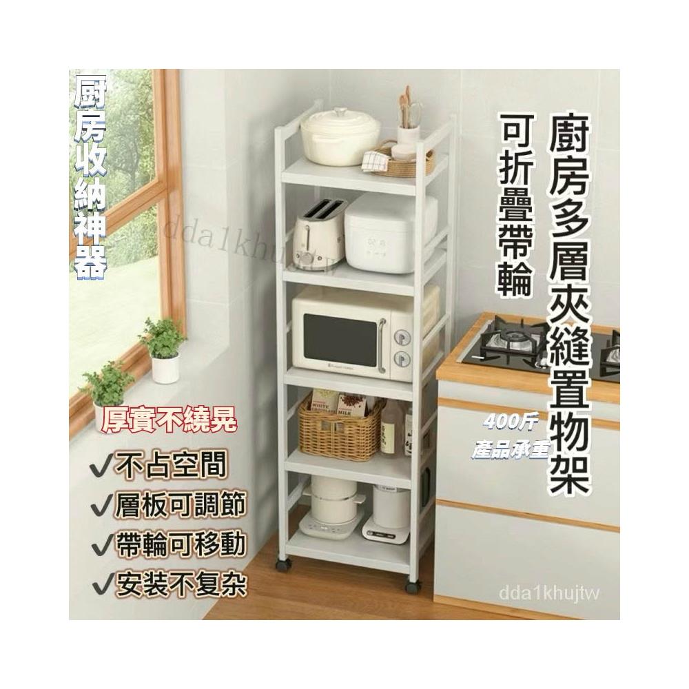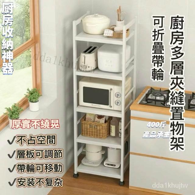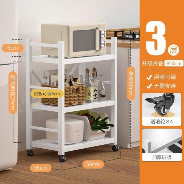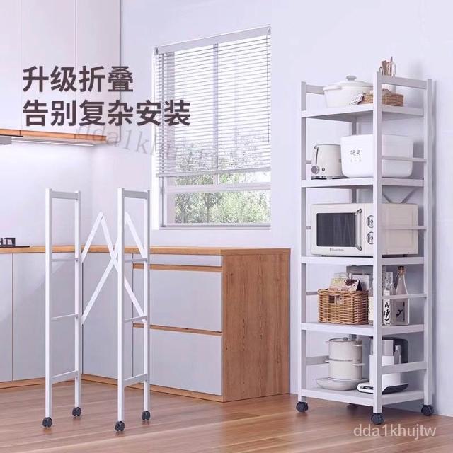 《全網🎁最低》廠家直銷 廚房收納架 三層/四層/五層 置物架可折疊 帶輪置物架 電器架微波爐/烤箱架 鍋具零食收納儲物