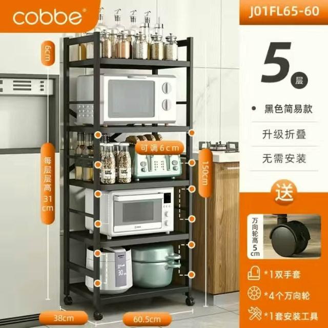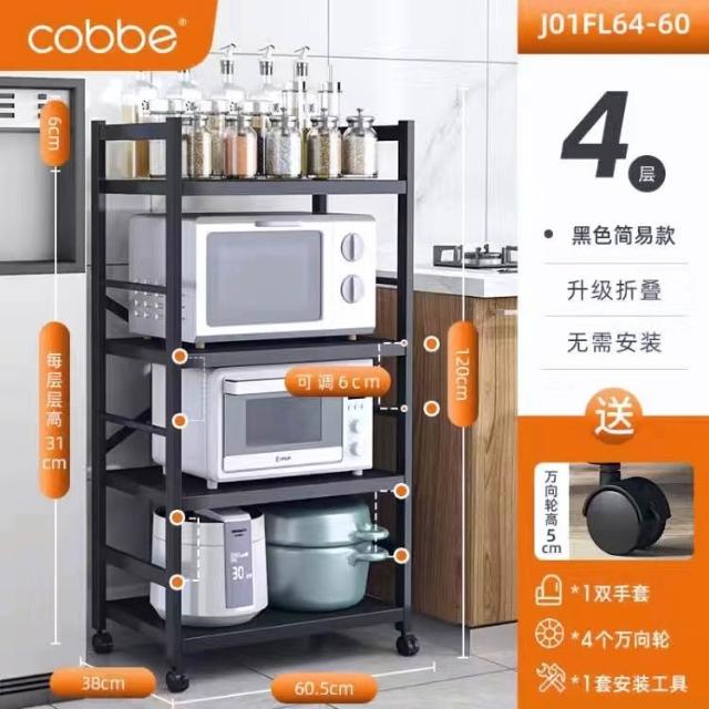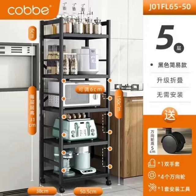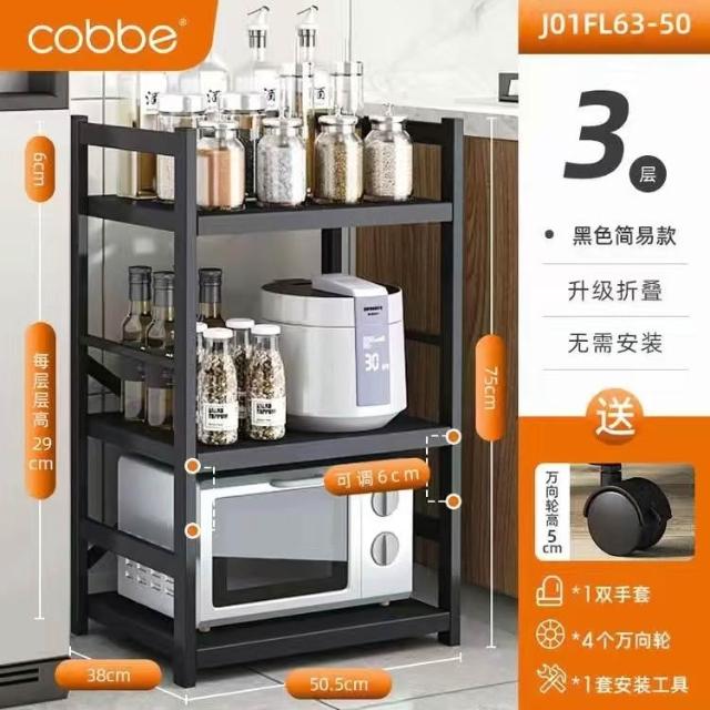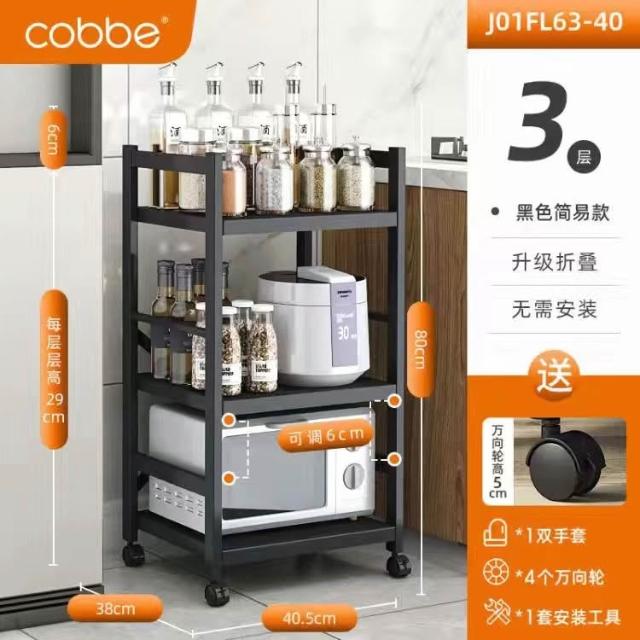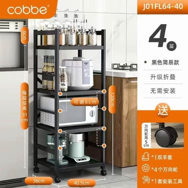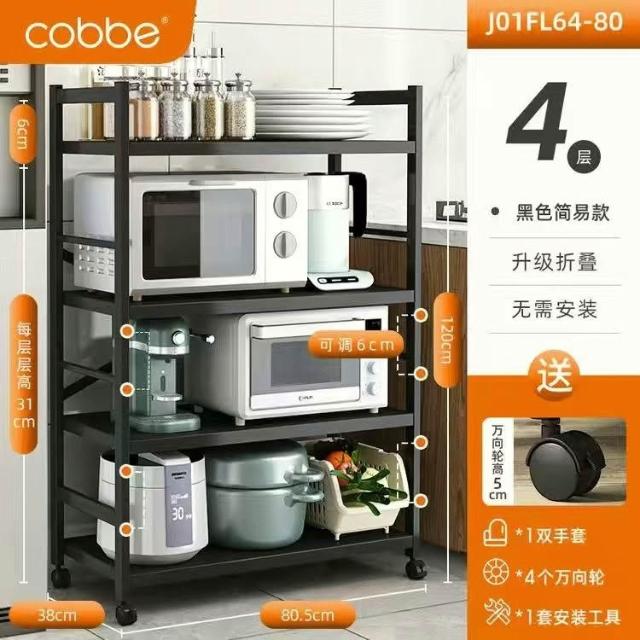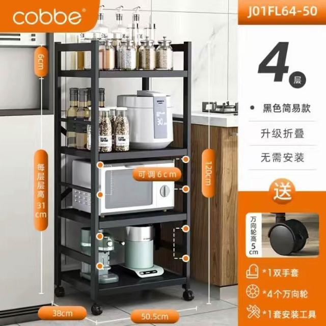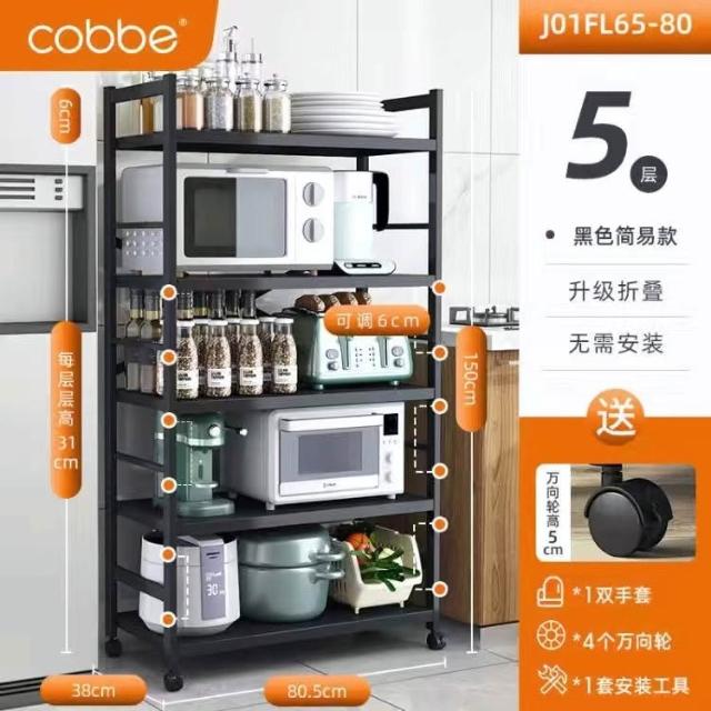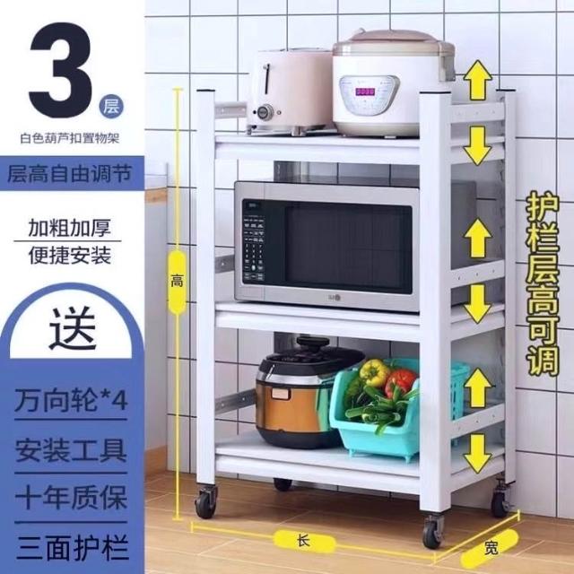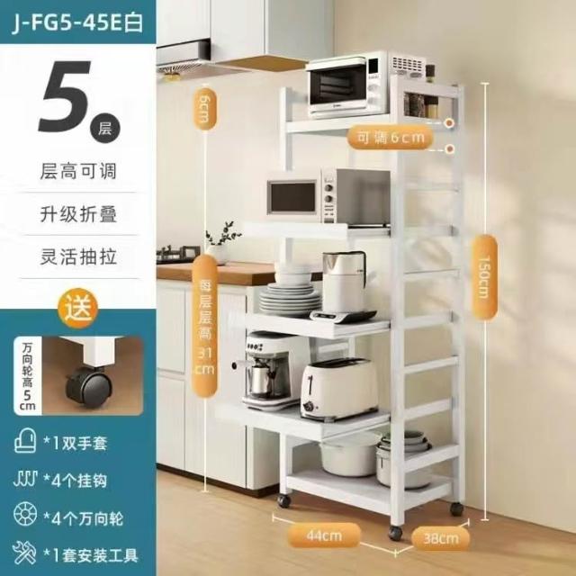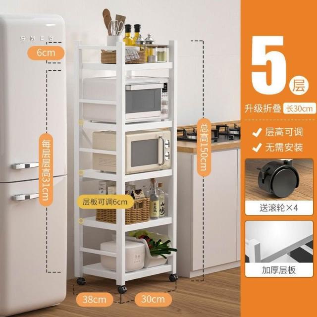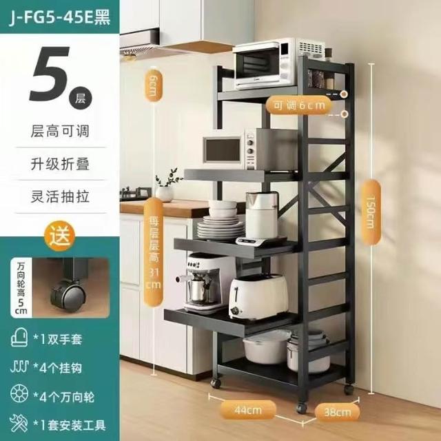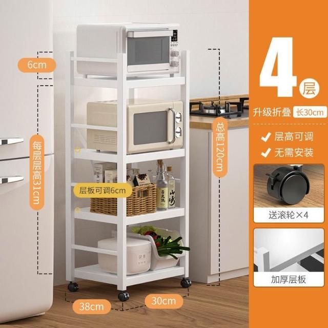 《全網🎁最低》廠家直銷 廚房收納架 三層/四層/五層 置物架可折疊 帶輪置物架 電器架微波爐/烤箱架 鍋具零食收納儲物