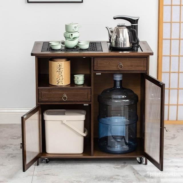 移動茶車泡茶臺簡約現代傢用茶桌套裝衚桃木色小茶幾燒水壺一體 泡茶桌 茶桌 泡茶臺 傢用茶桌 茶櫃 茶水櫃