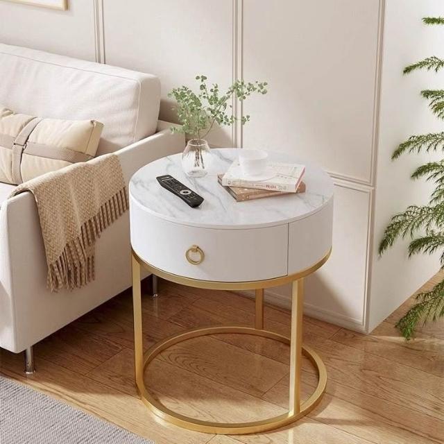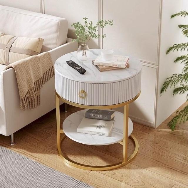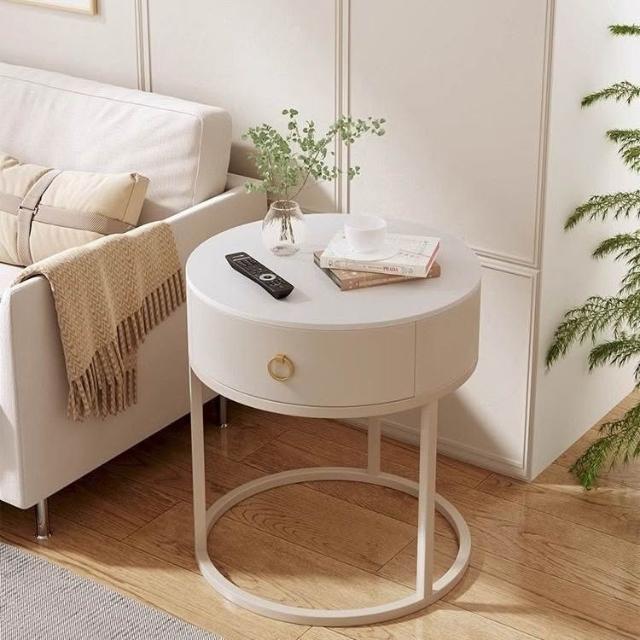 免運 可開發票 奶油風圓形小茶幾客廳傢用沙發巖闆邊幾臥室帶抽屜床頭櫃簡約現代 輕奢儲物櫃 客廳邊角櫃 多功能收納 沙發