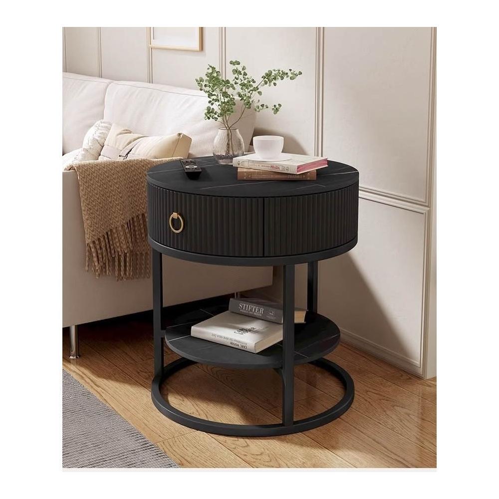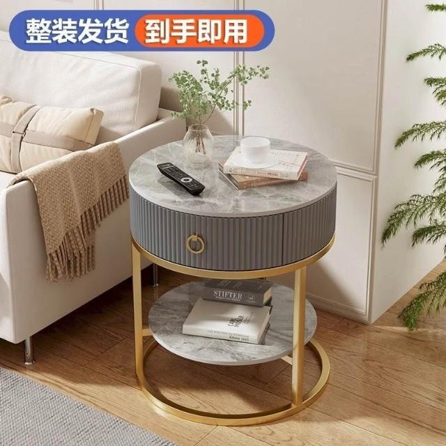 免運 可開發票 奶油風圓形小茶幾客廳傢用沙發巖闆邊幾臥室帶抽屜床頭櫃簡約現代 輕奢儲物櫃 客廳邊角櫃 多功能收納 沙發