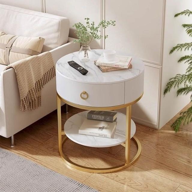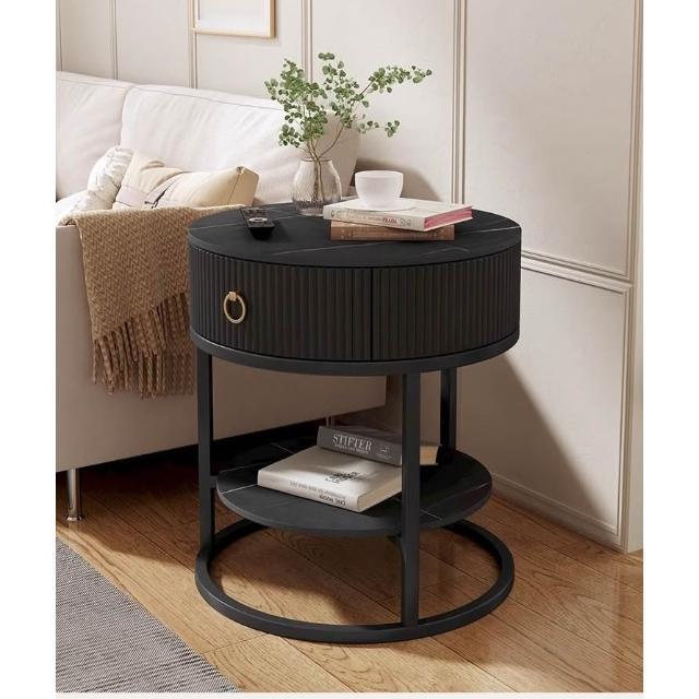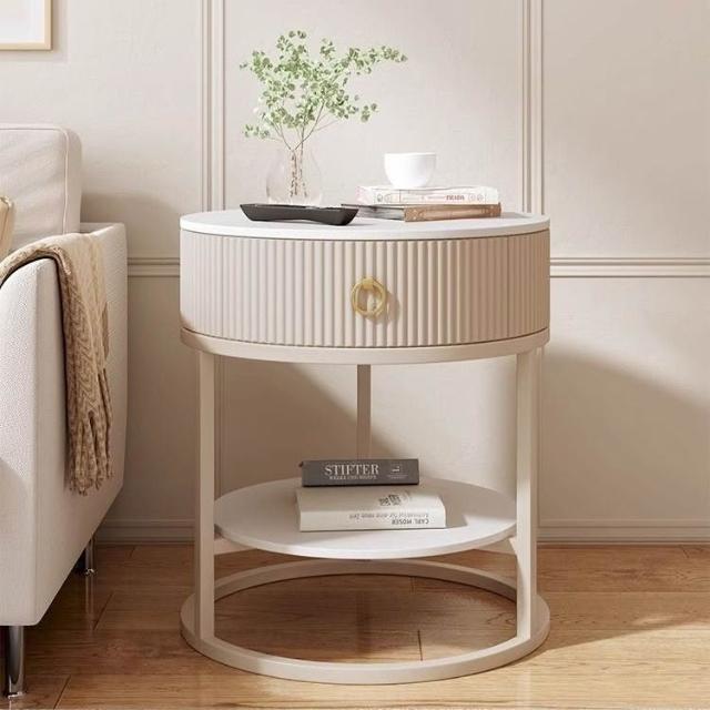 免運 可開發票 奶油風圓形小茶幾客廳傢用沙發巖闆邊幾臥室帶抽屜床頭櫃簡約現代 輕奢儲物櫃 客廳邊角櫃 多功能收納 沙發