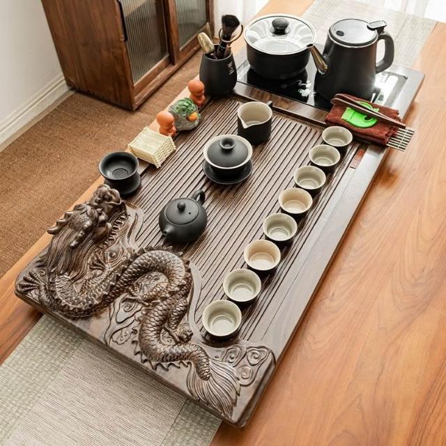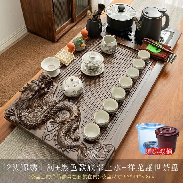 🔥免運🔥大茶盤 實木茶盤 功夫陶瓷茶具套裝傢用客廳全自動一體底部上水泡茶臺大號實木茶盤