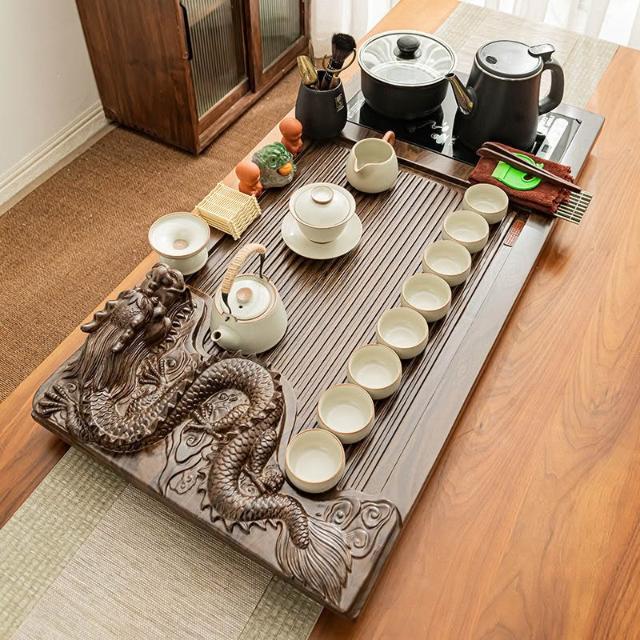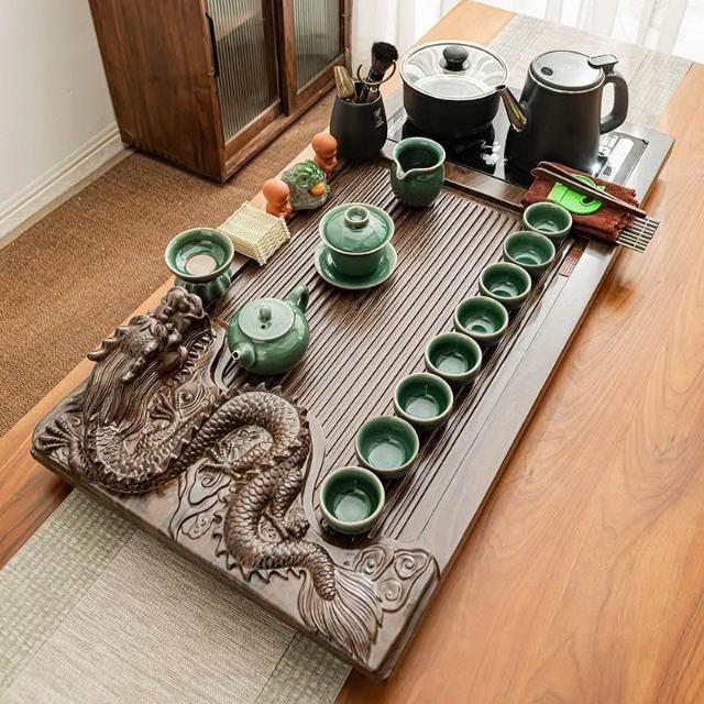 🔥免運🔥大茶盤 實木茶盤 功夫陶瓷茶具套裝傢用客廳全自動一體底部上水泡茶臺大號實木茶盤