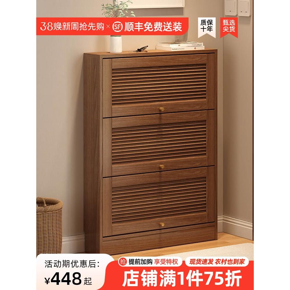 翻斗鞋柜实木超薄鞋柜18cm窄款家用门口玄关鞋柜收纳省空间小户型