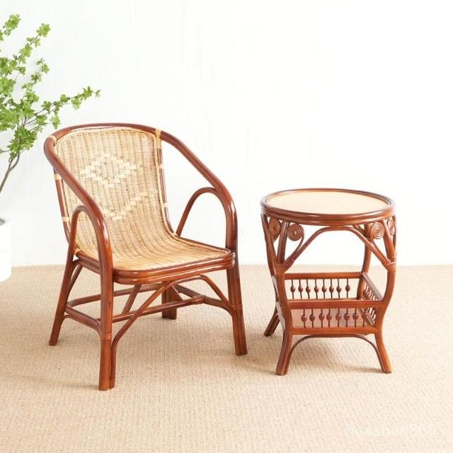 編織椅 休閒椅 陽臺圓椅子靠背半圓形騰椅藤椅家用三件套茶幾桌辦公室藤椅