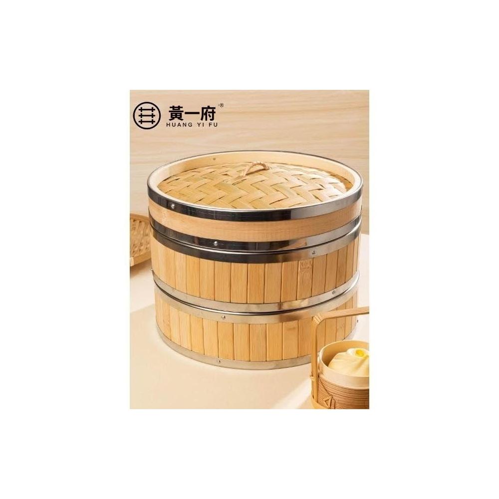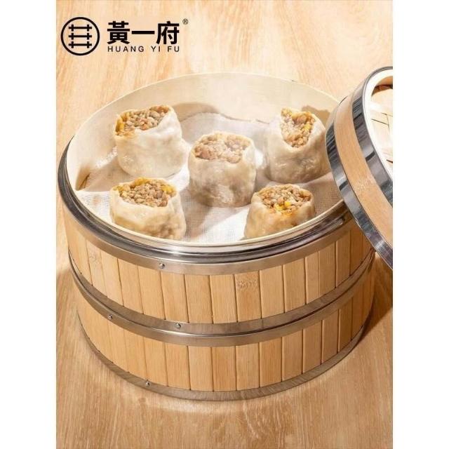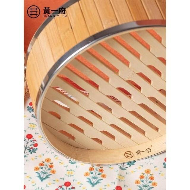 黄一府蒸笼竹制家用不锈钢竹编蒸架商用加深竹蒸屉小笼包馒头笼屉