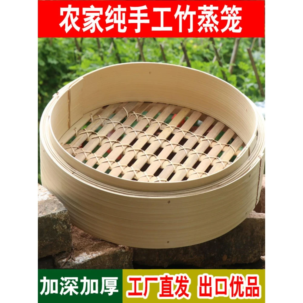 竹蒸笼 竹制蒸笼家用加深加高笼屉 竹编大号商用蒸馒头包子竹笼屉