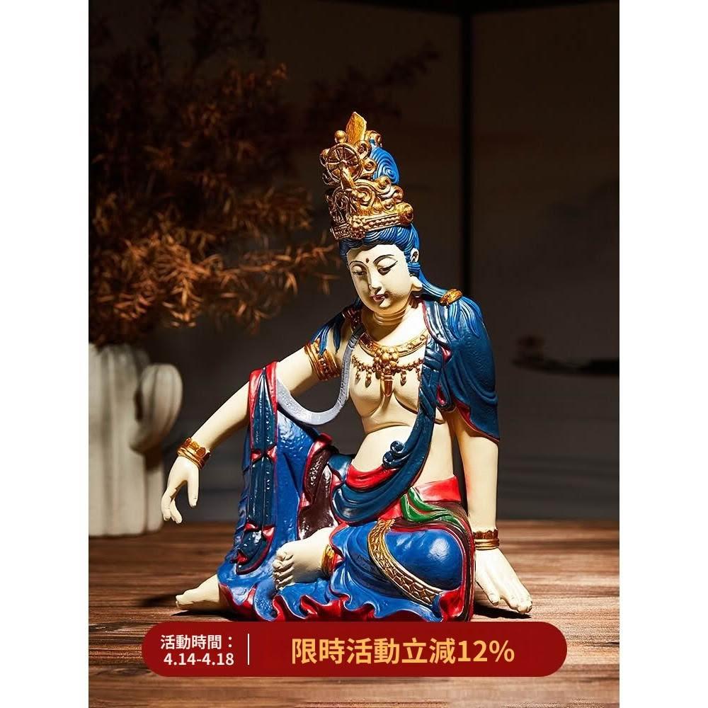 水月自在观音摆件菩萨佛像坐像供奉中式禅意工艺品客厅茶空间装饰