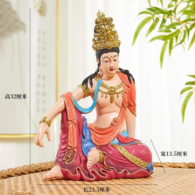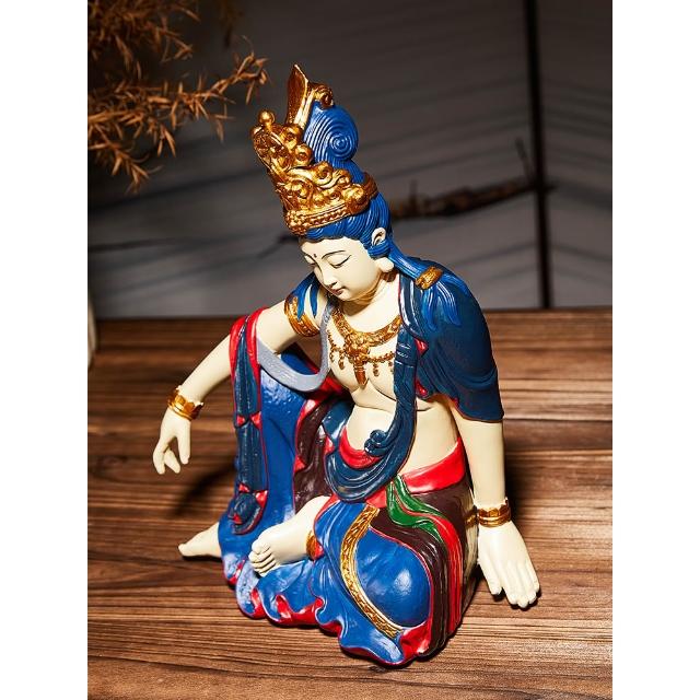 水月自在观音摆件菩萨佛像坐像供奉中式禅意工艺品客厅茶空间装饰