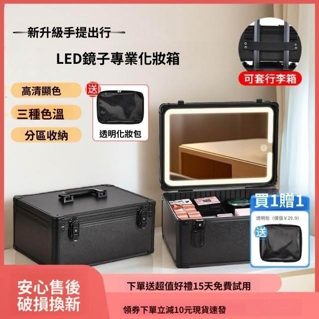化妆箱带镜子带灯便携手提化妆品收纳盒专业跟妆师专用可挂行李箱