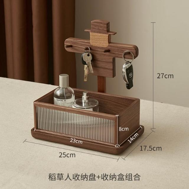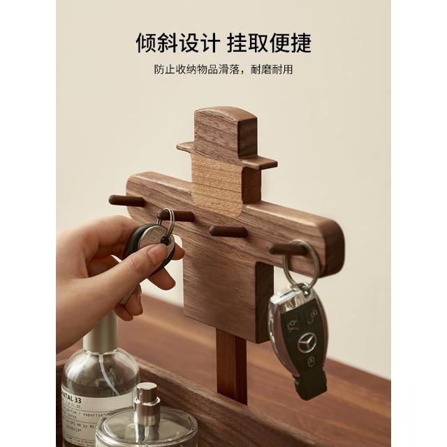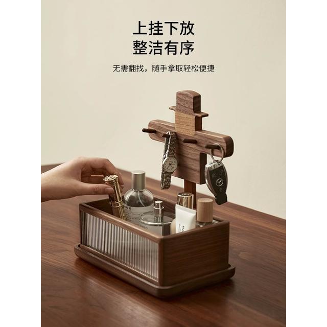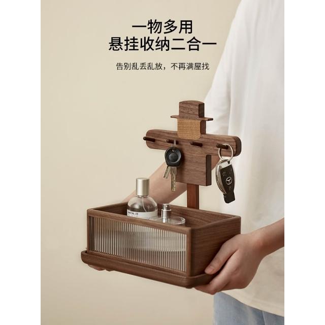 創意擺件進門玄關門口鑰匙收納盒辦公室桌面置物架雜物整理實木