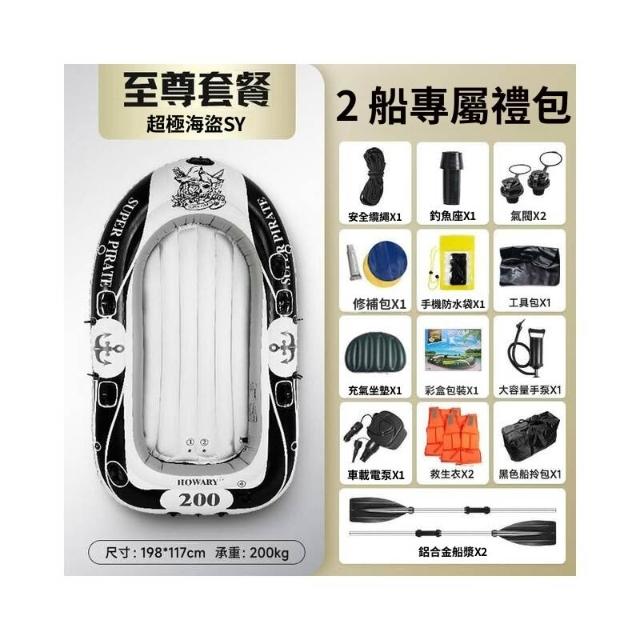 橡皮艇加厚耐磨充氣船漁船2/3/4人釣魚船皮划艇衝鋒舟折疊氣墊船