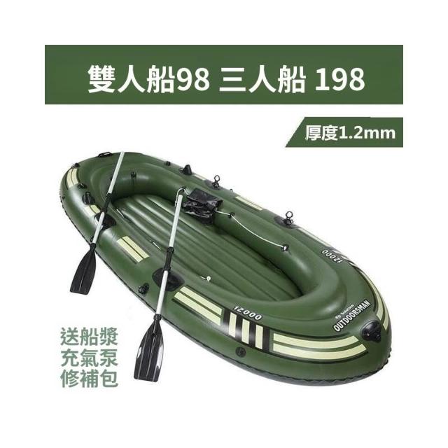 橡皮艇加厚充氣船2/3/4人皮划艇耐磨氣墊釣魚船救生捕魚艇衝鋒舟