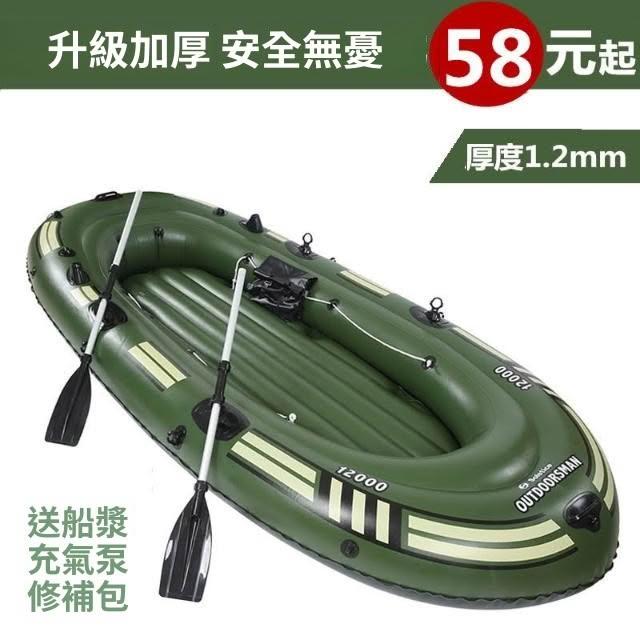 橡皮艇加厚充氣船2/3/4人皮划艇耐磨氣墊釣魚船救生捕魚艇衝鋒舟