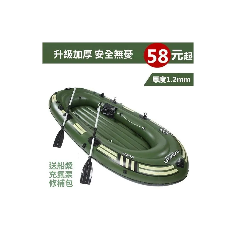 橡皮艇加厚充氣船2/3/4人皮划艇耐磨氣墊釣魚船救生捕魚艇衝鋒舟