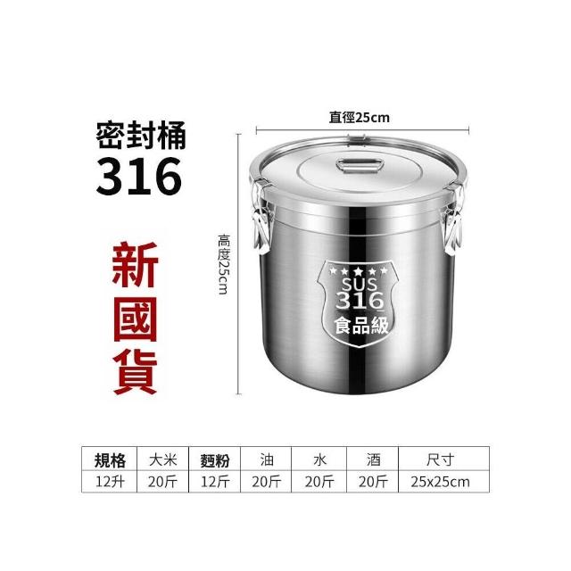 特厚316食品級密封桶家用20斤裝米桶面桶不銹鋼湯桶防蟲防潮米缸