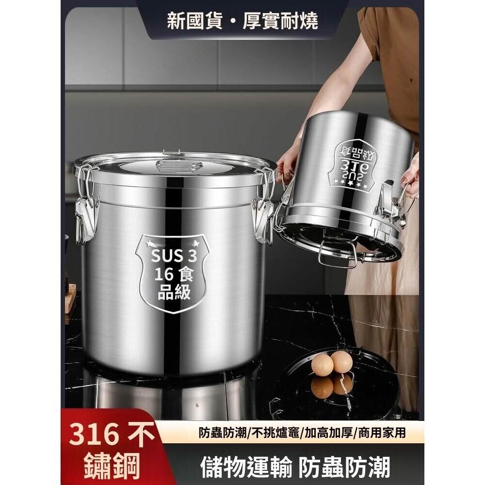 特厚316食品級密封桶家用20斤裝米桶面桶不銹鋼湯桶防蟲防潮米缸