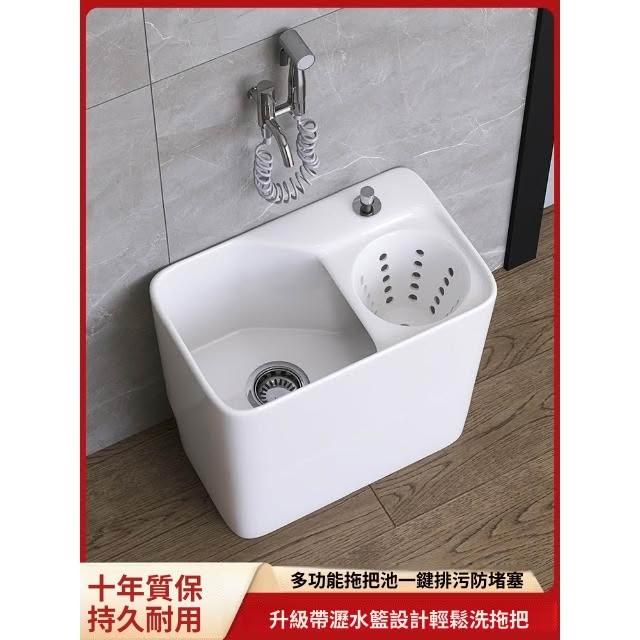 陶瓷拖把池陽臺拖布盆落地衛生間墩布池瀝水籃擰幹地拖桶高腳水槽
