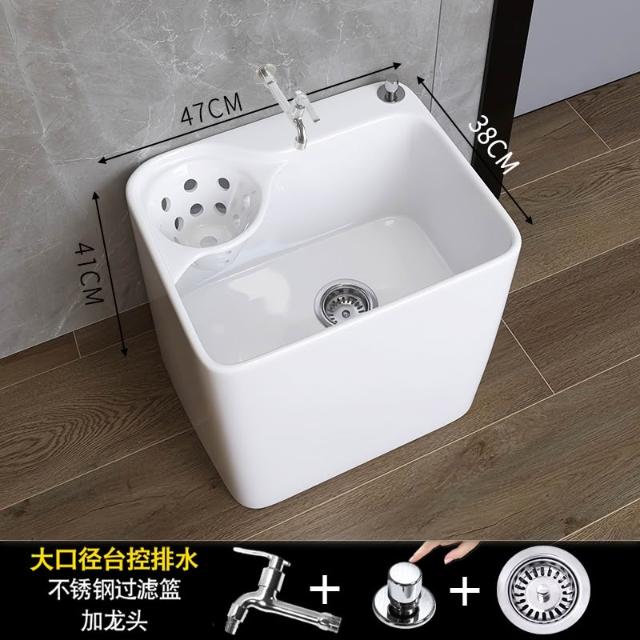 陶瓷拖把池陽臺拖布盆落地衛生間墩布池瀝水籃擰幹地拖桶高腳水槽