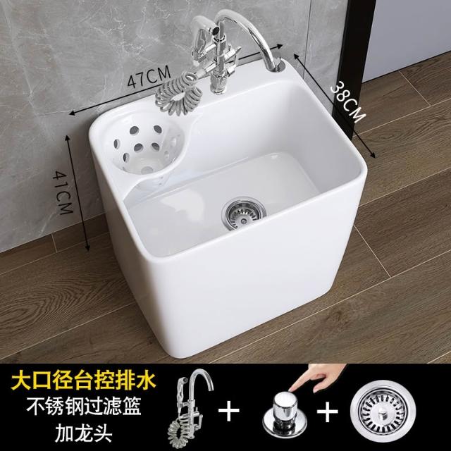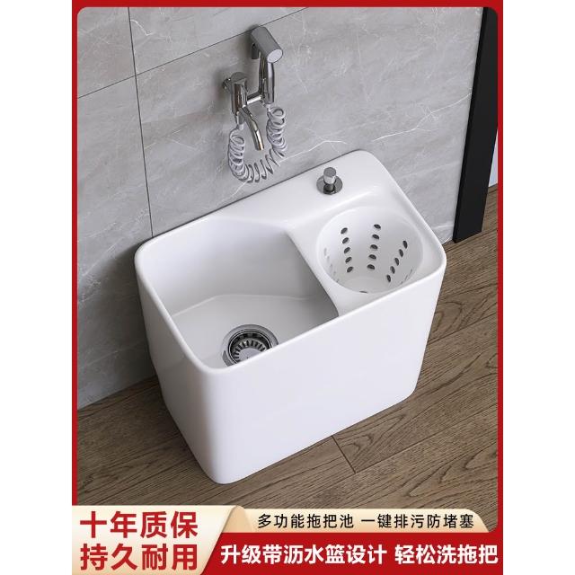 陶瓷拖把池陽臺拖布盆落地衛生間墩布池瀝水籃擰幹地拖桶高腳水槽