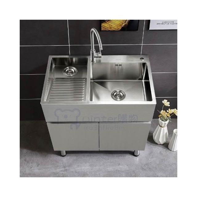 不鏽鋼水槽 洗衣槽 陽臺櫃一體櫃帶支架 廚房304不銹鋼洗碗池 洗衣檯 落地式浴室櫃組閤帶搓闆 洗手臺