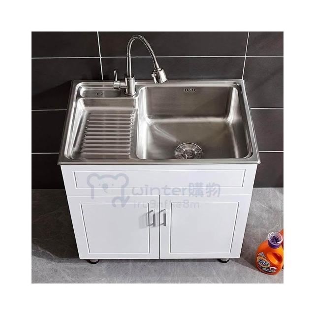 不鏽鋼水槽 洗衣槽 陽臺櫃一體櫃帶支架 廚房304不銹鋼洗碗池 洗衣檯 落地式浴室櫃組閤帶搓闆 洗手臺