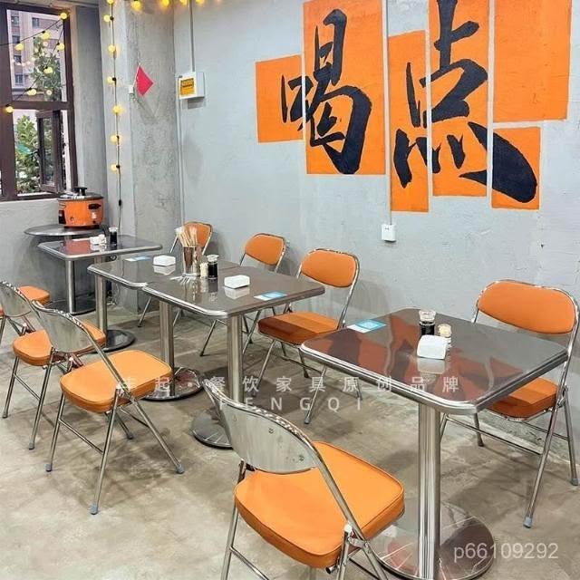 工業風茶餐廳大排檔燒烤店不銹鋼桌椅組閤港式餐飲快餐桌子商用