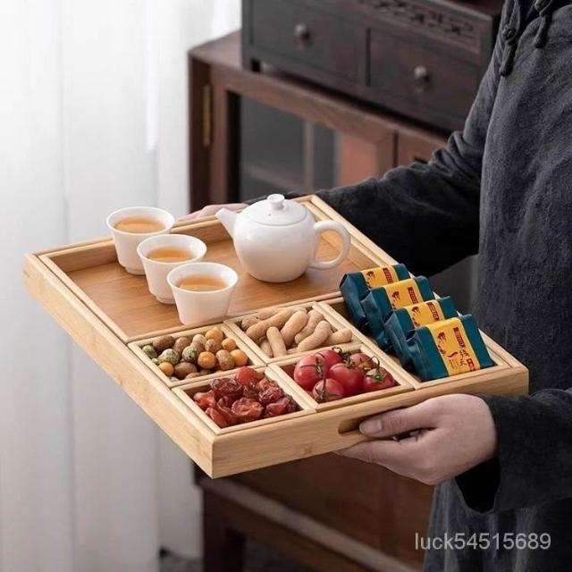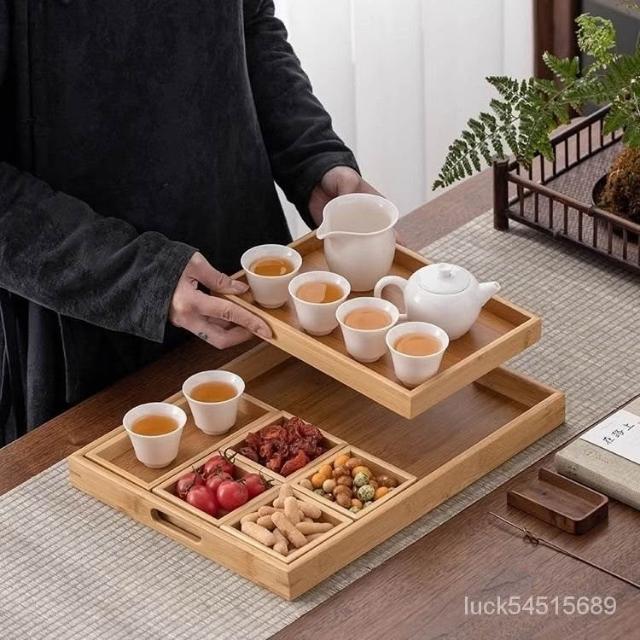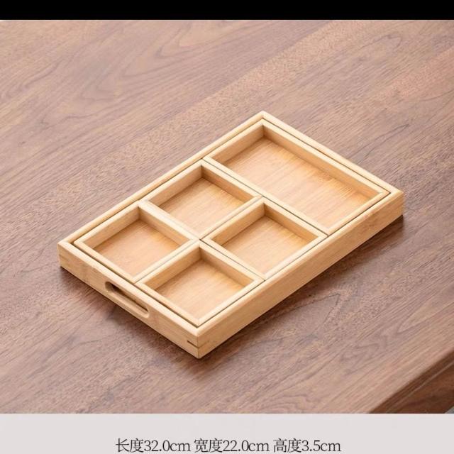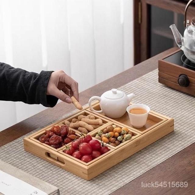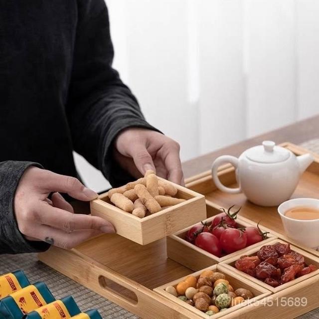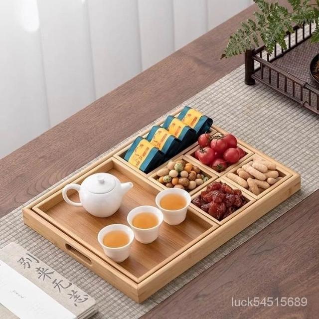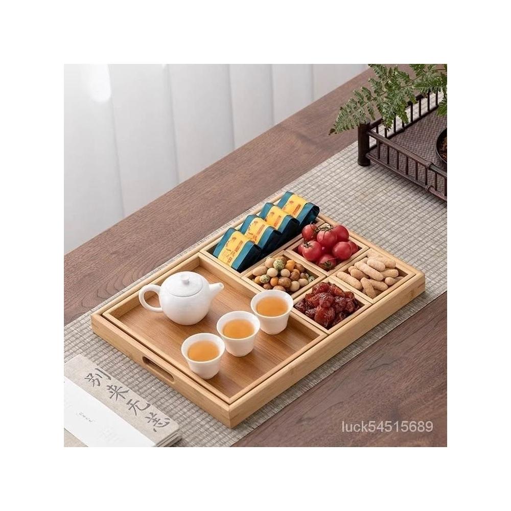 優選~免稅店/九宮格果盒傢用客廳茶幾新中式點心零食盒水果盤竹木質茶水杯託盤