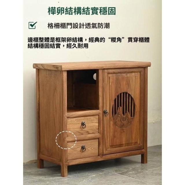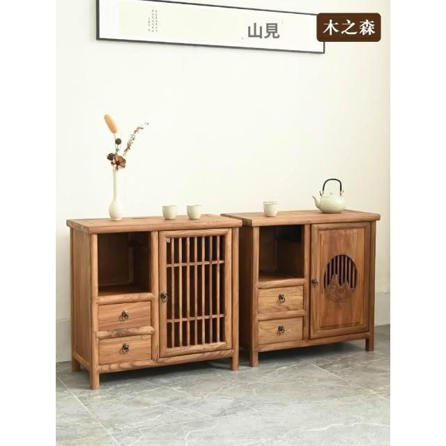 老榆木茶水櫃新中式客廳邊幾禪意餐邊櫃實木置物櫃燒水茶水臺一體