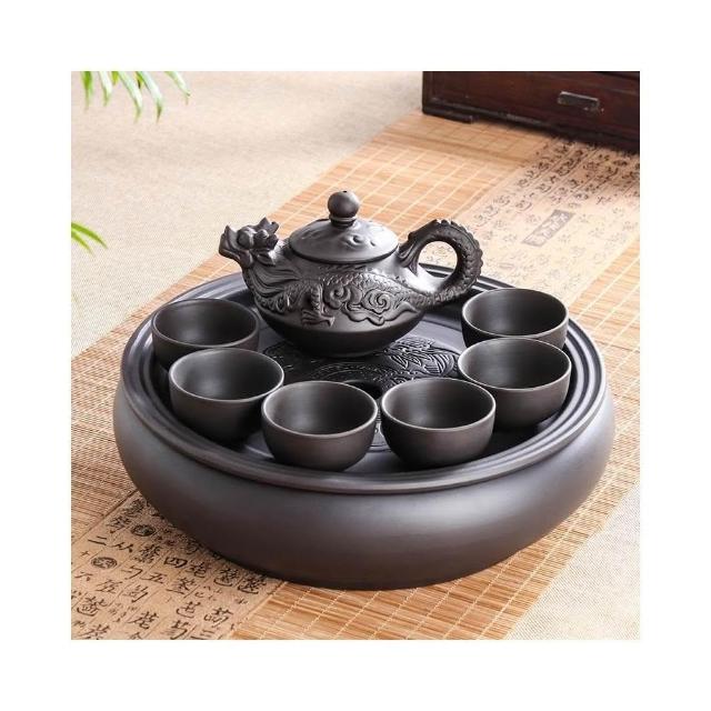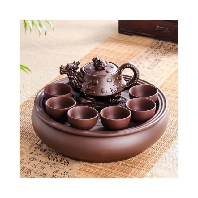 紫砂功夫茶具套裝現代家用簡約圓形茶盤泡茶整套潮汕陶瓷茶壺茶杯
