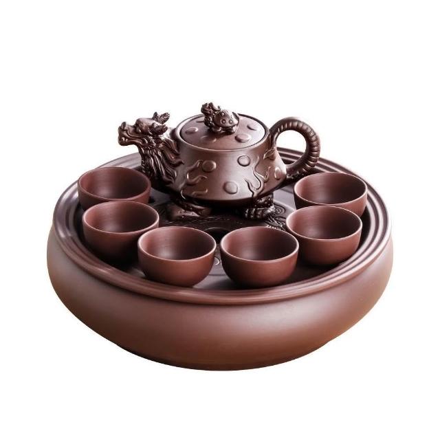 紫砂功夫茶具套裝現代家用簡約圓形茶盤泡茶整套潮汕陶瓷茶壺茶杯