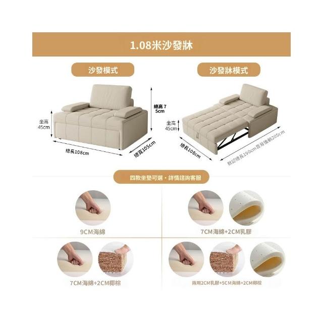 勞倫斯沙發床布藝推拉折疊一體兩用多功能小戶型沙發奶油風懶人床
