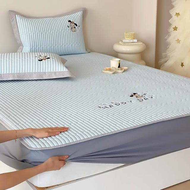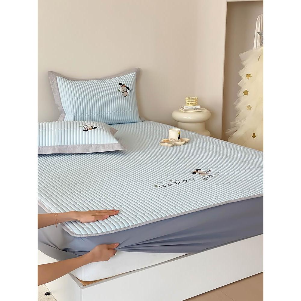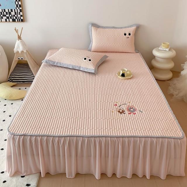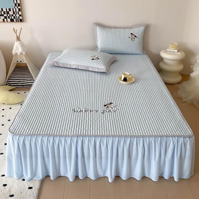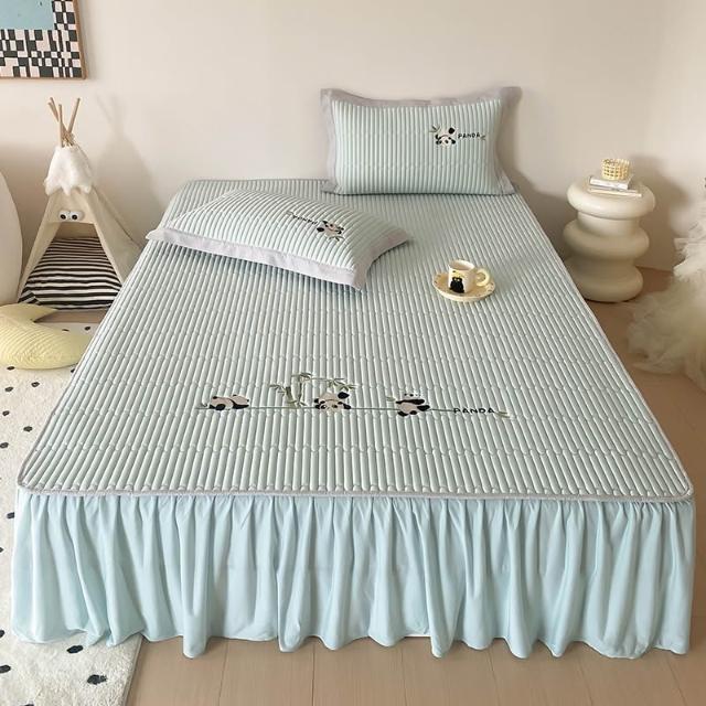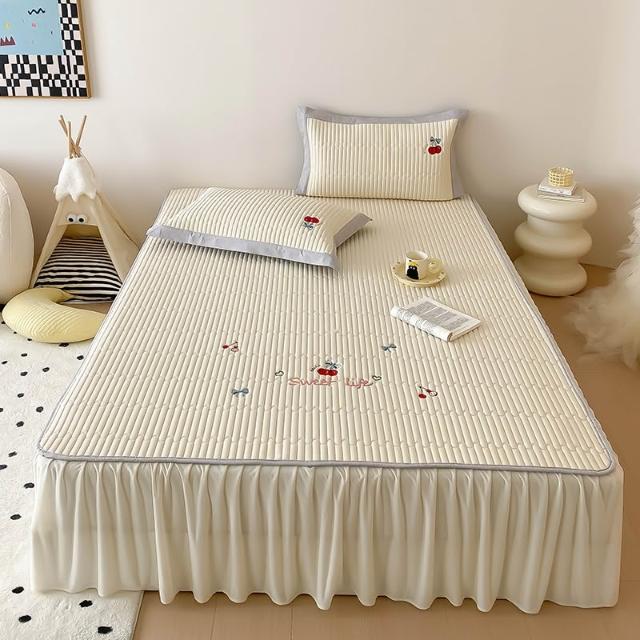 高端夏季乳膠床笠款涼席三件套卡通風刺繡可水洗床裙款涼感空調席