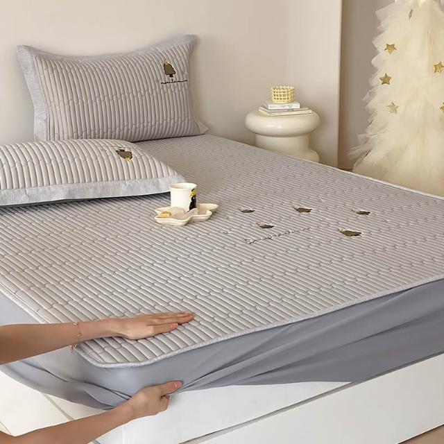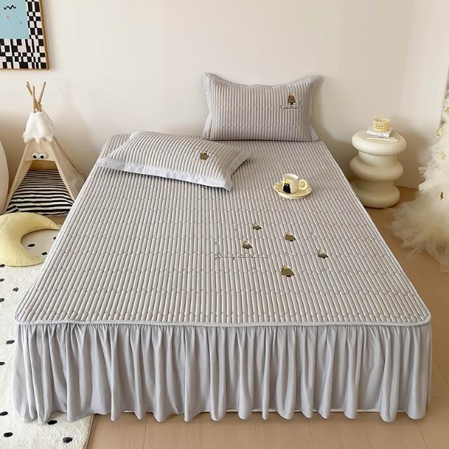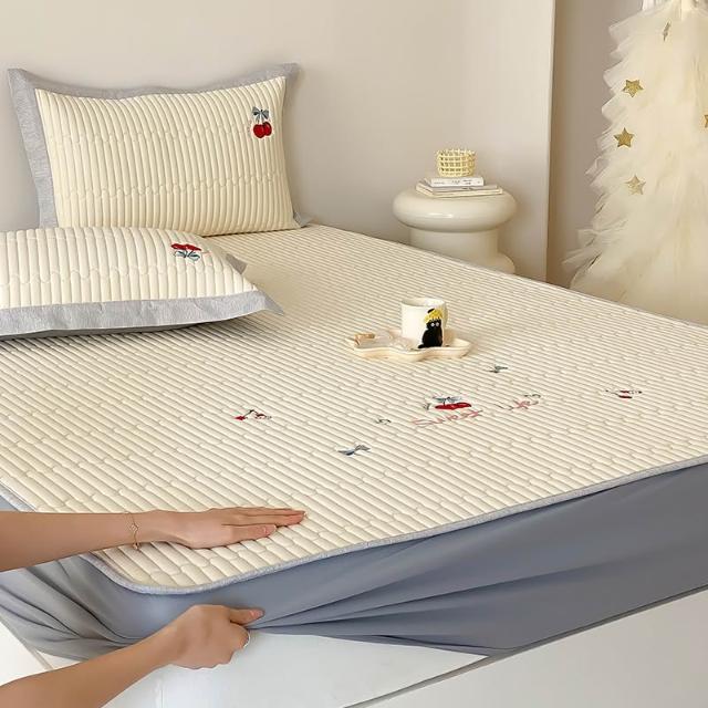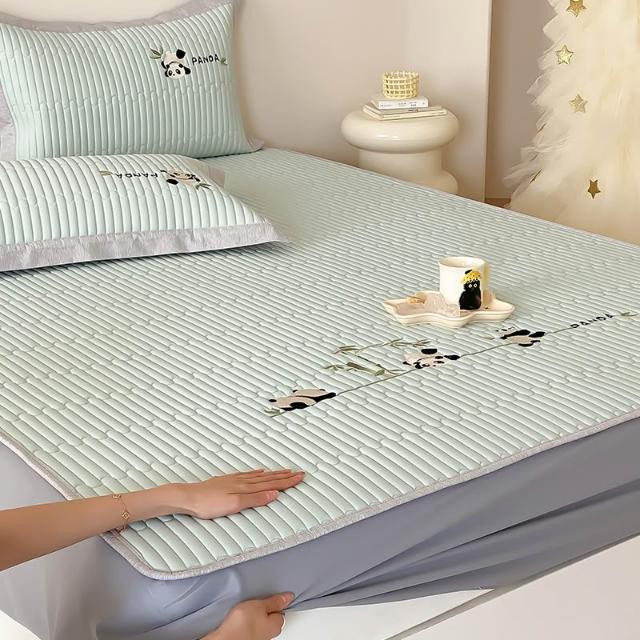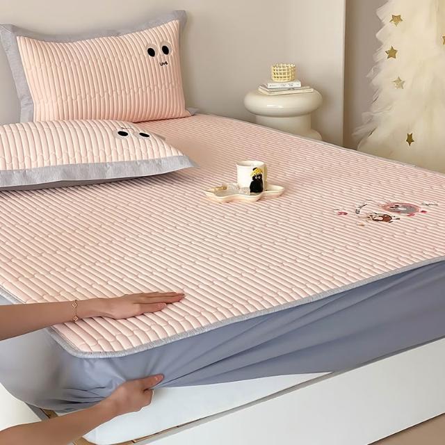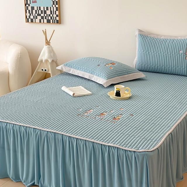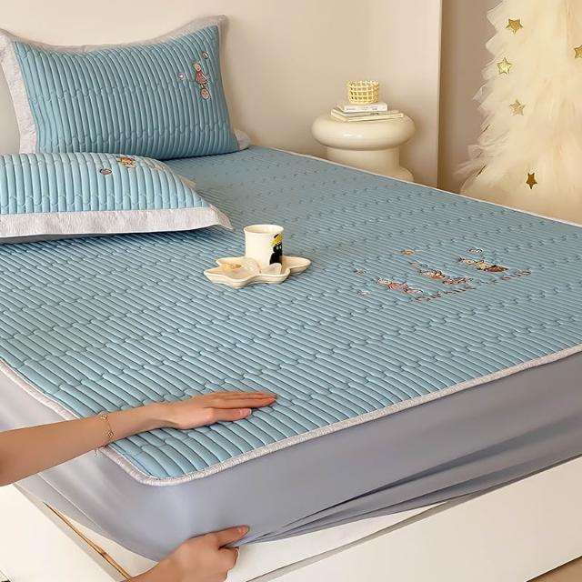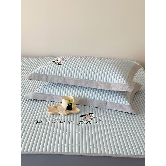 高端夏季乳膠床笠款涼席三件套卡通風刺繡可水洗床裙款涼感空調席