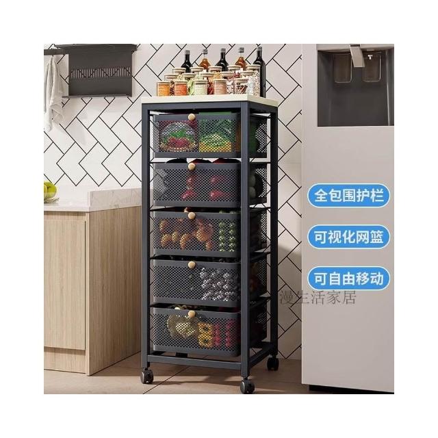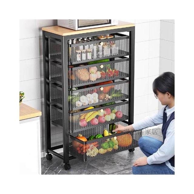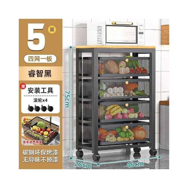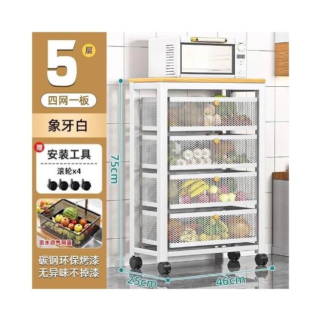 廚房菜籃子置物架家用移動落地式多層果蔬收納筐多功能微波爐架子