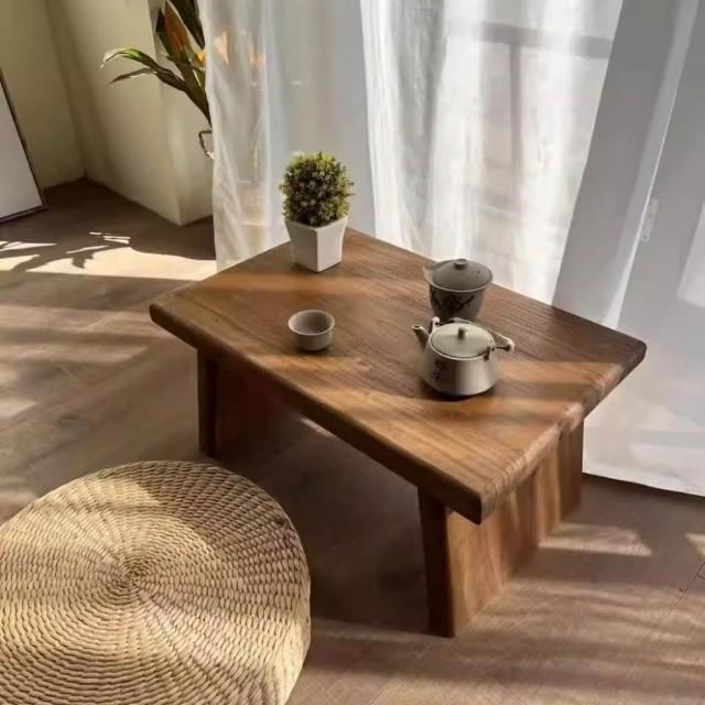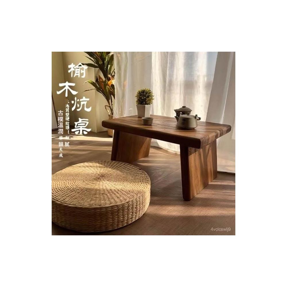 老榆木茶桌日式茶幾炕幾榻榻米矮桌客廳實木原木飄窗桌家用小茶臺