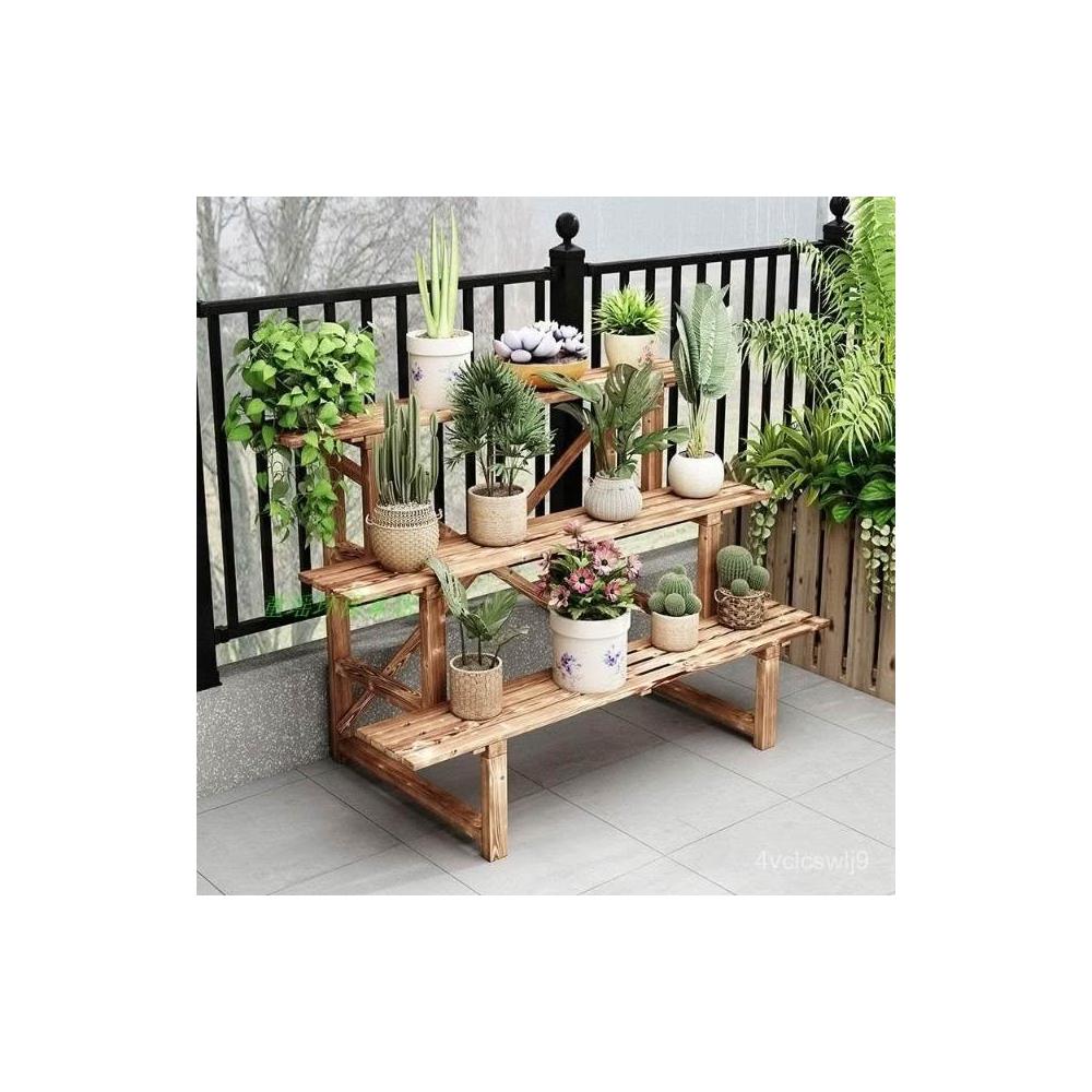 實木階梯花架 防腐戶外置物架 室內陽臺多肉綠蘿碳化多層花盆架子 盆栽架 花架陽臺落地式 園藝花架 植物架 陽臺花架