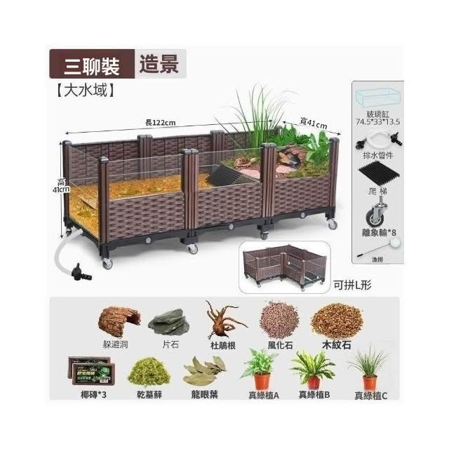 生態烏龜缸家用大型養龜黃緣專用飼養箱陸龜半水龜造景養殖別墅屋