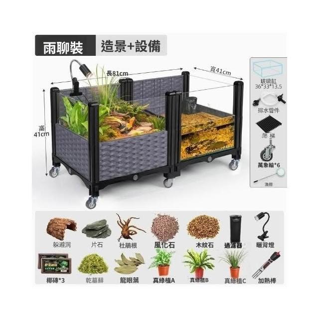 生態烏龜缸家用大型養龜黃緣專用飼養箱陸龜半水龜造景養殖別墅屋