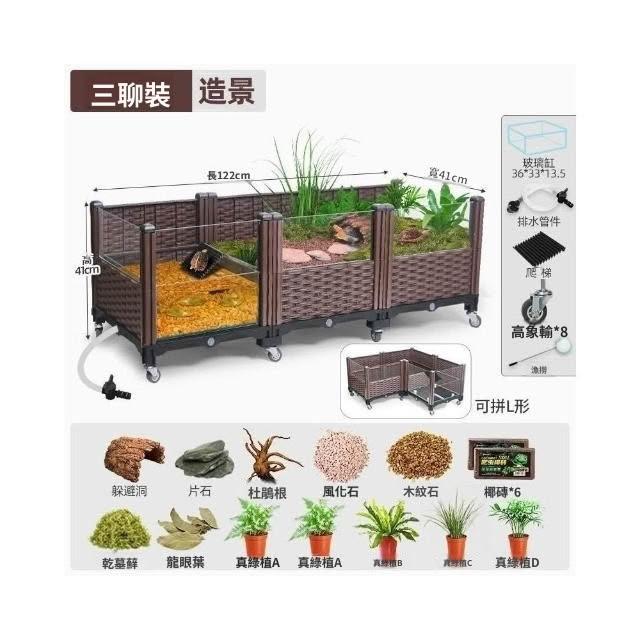 生態烏龜缸家用大型養龜黃緣專用飼養箱陸龜半水龜造景養殖別墅屋