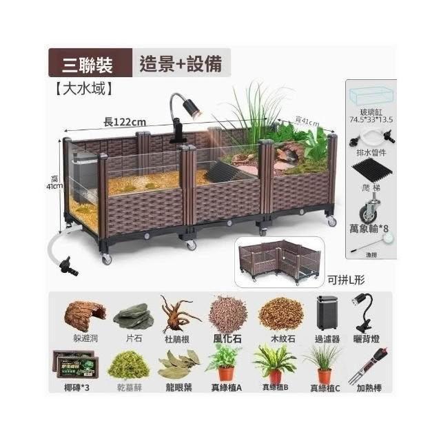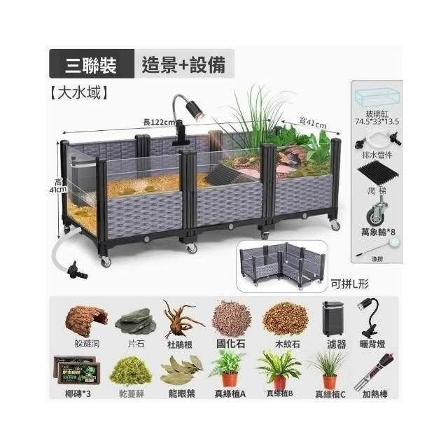 生態烏龜缸家用大型養龜黃緣專用飼養箱陸龜半水龜造景養殖別墅屋