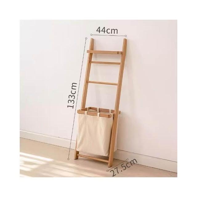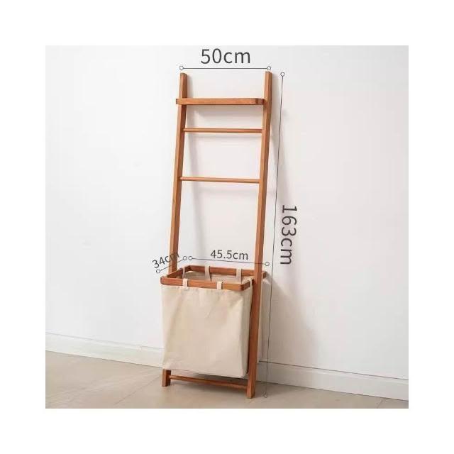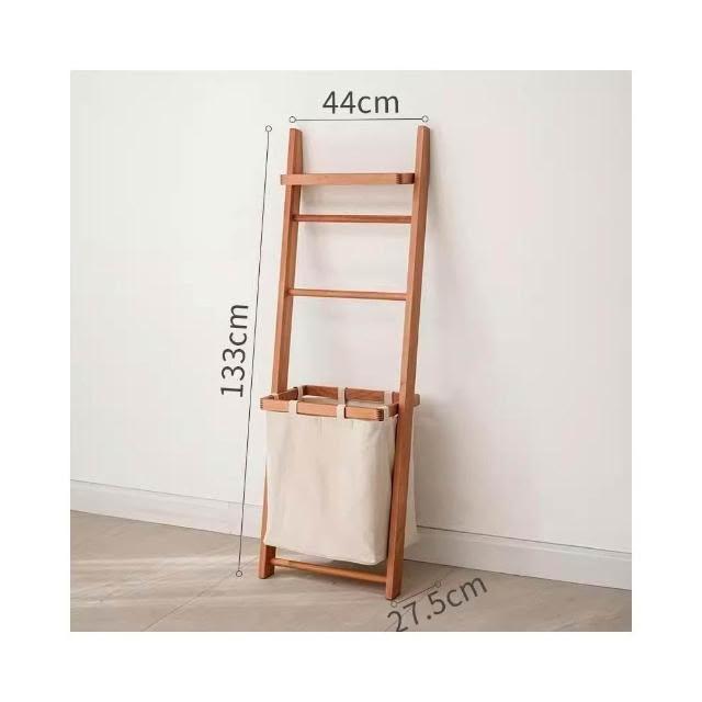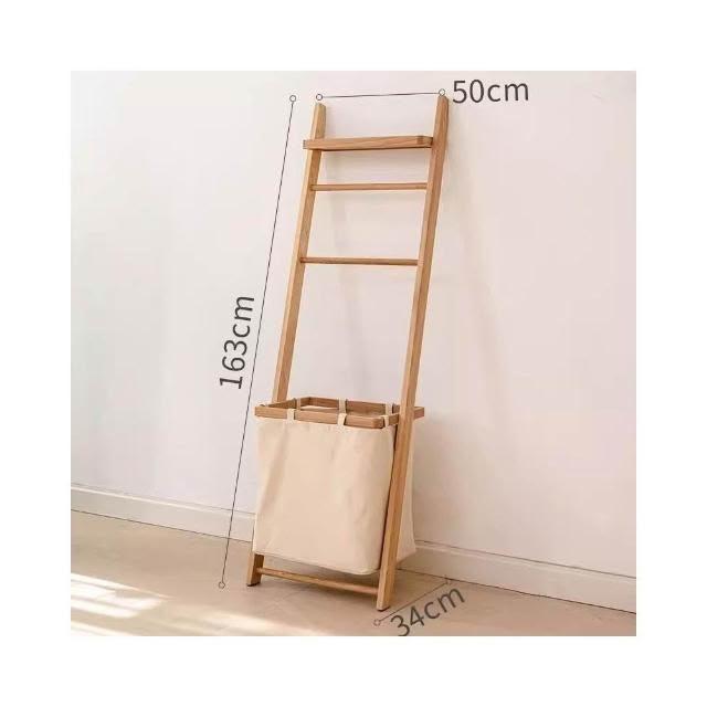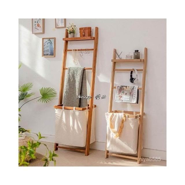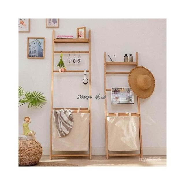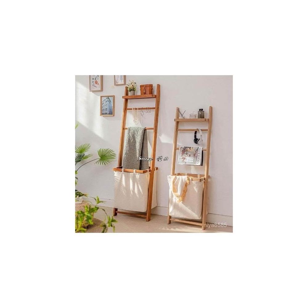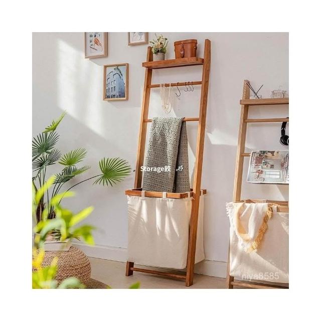 掬涵多功能落地掛衣架 臟衣簍浴室實木浴巾架 家用立式收納架衣帽架北歐浴室衛生間落地毛巾架 置物架 收納架