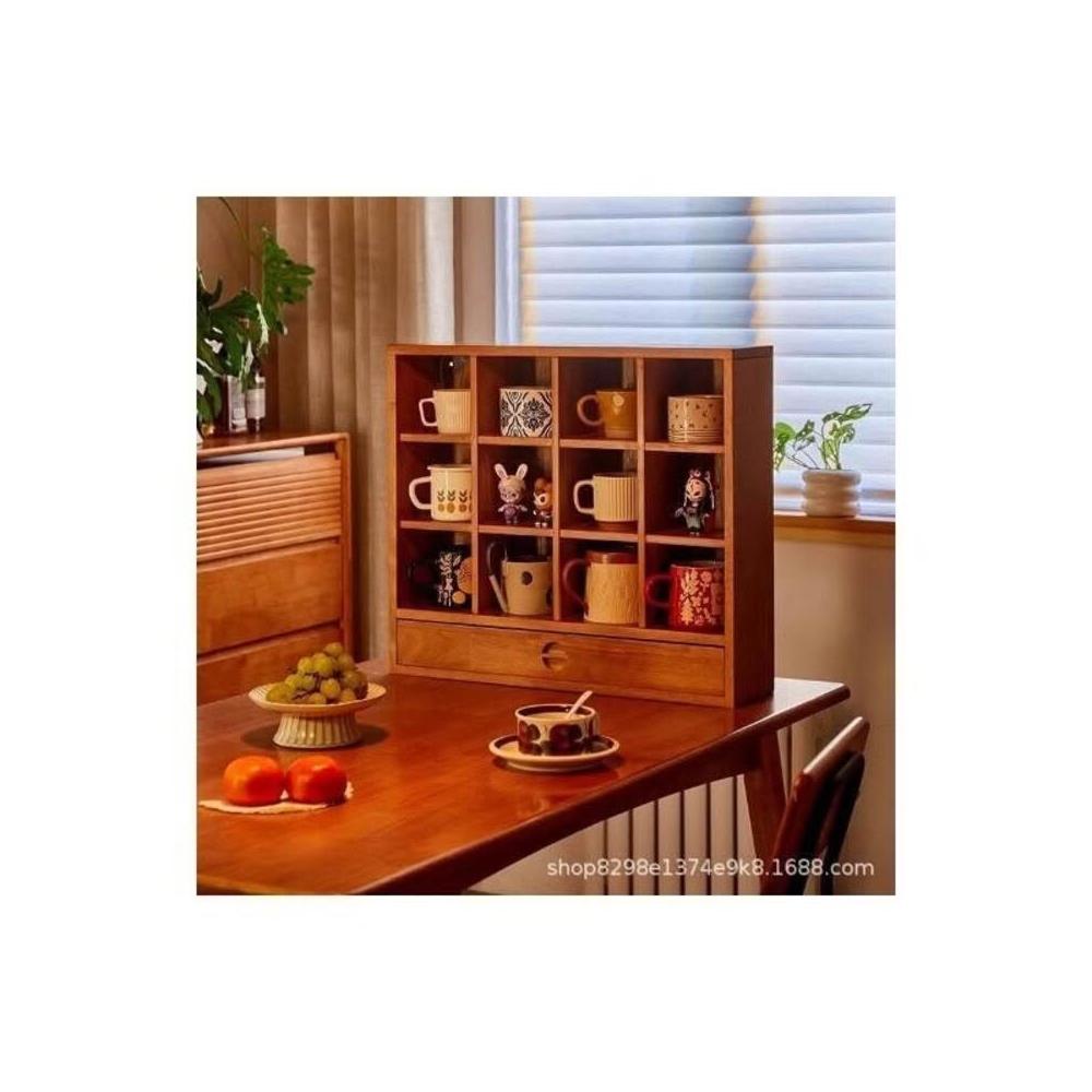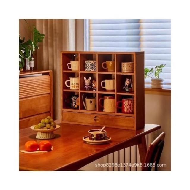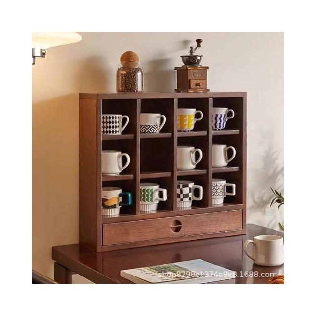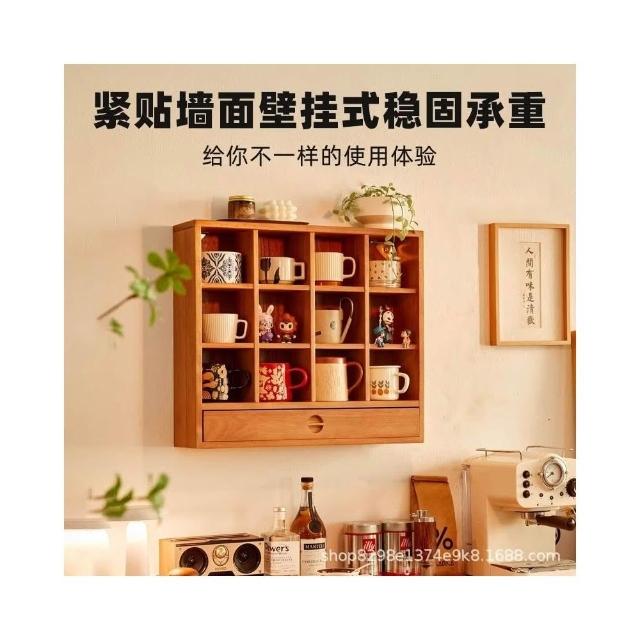 實木格架 方格子 置物架 櫻桃木色杯架 收納格子架 桌麵杯子展示架擱架