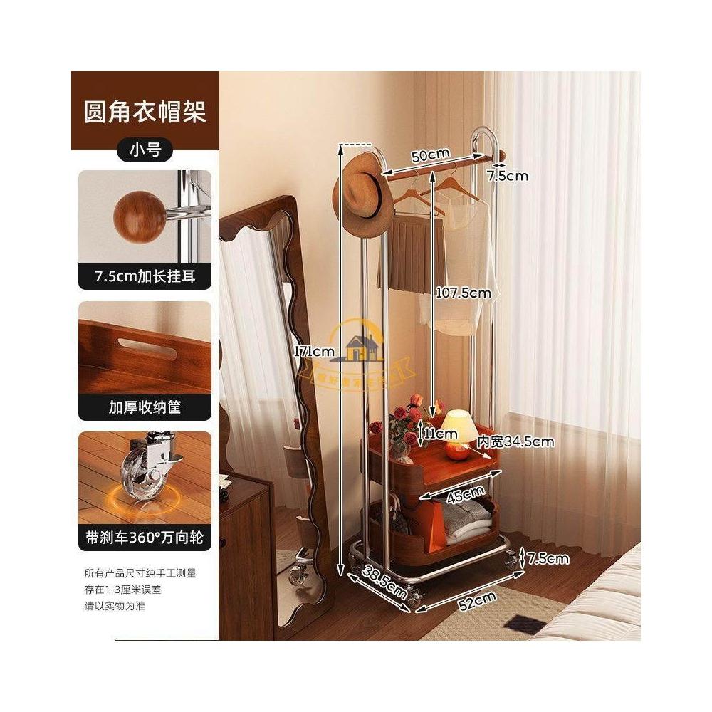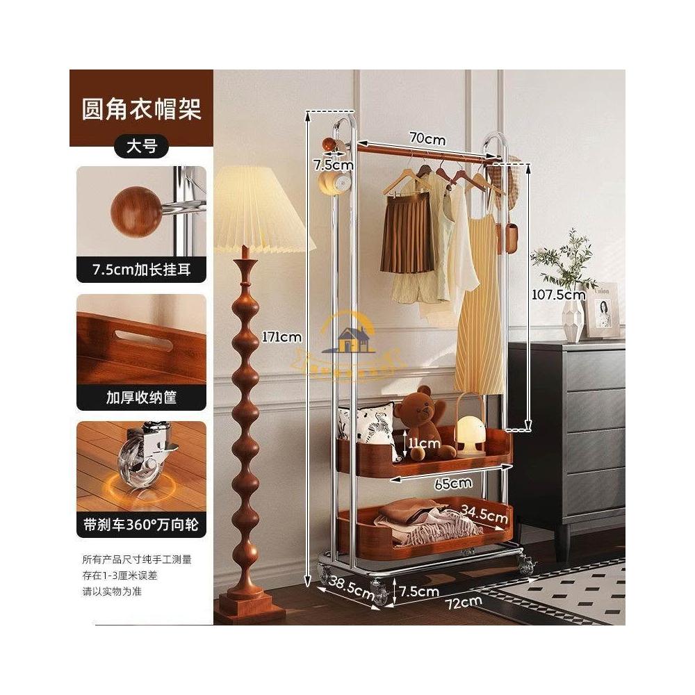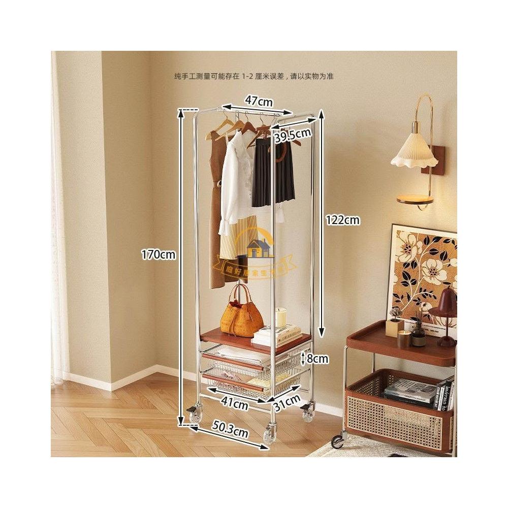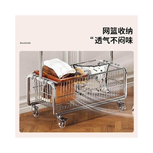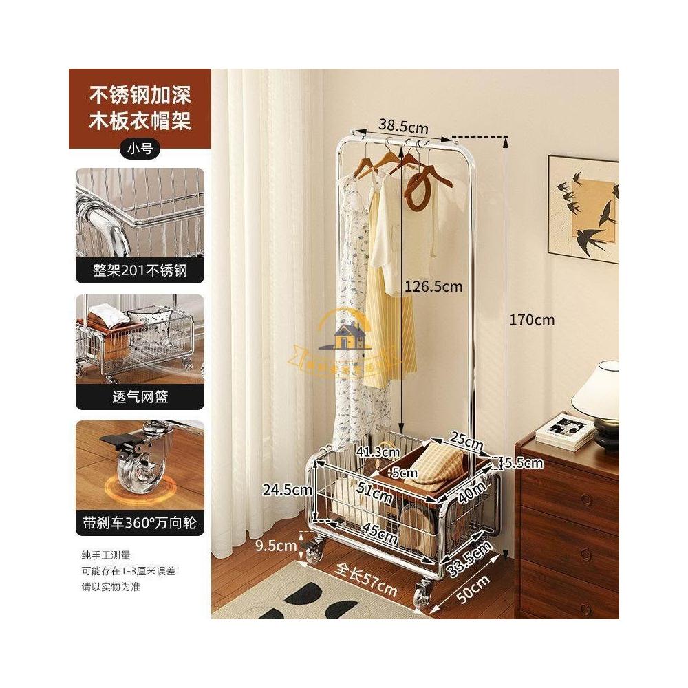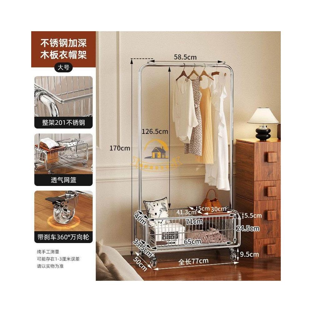 可移動衣帽架 家用落地展示掛衣架 服裝店臥室房間簡易帶籃收納掛衣架 不鏽鋼掛衣架 可移動帶輪中古風掛衣架
