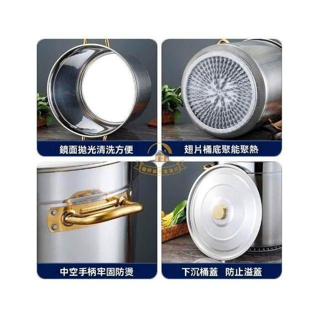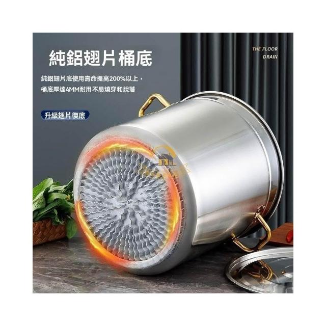 不鏽鋼湯桶復底翅片桶特厚湯鍋耐燒圓桶煤氣專用桶 翅片鍋帶蓋 廚房用具大全 廚房必備好物