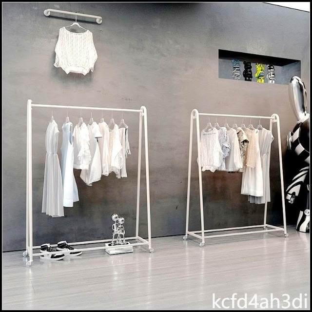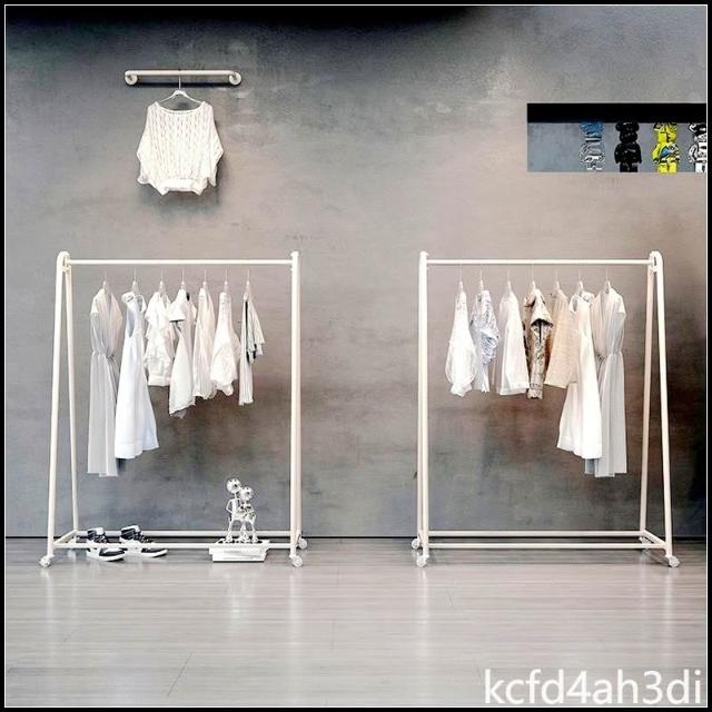 奶油風服裝店 展示架 掛衣架 直播間落地桿 女裝店中島 白色貨架 加輪子