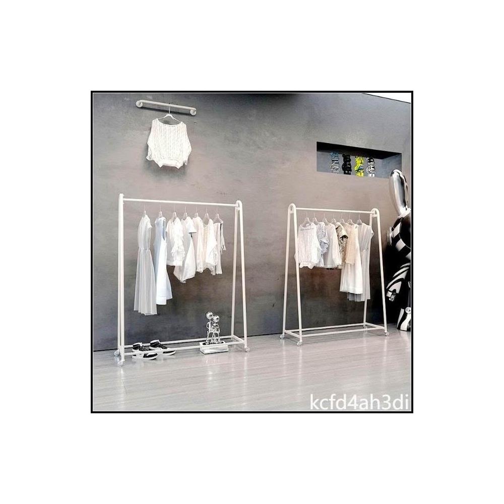奶油風服裝店 展示架 掛衣架 直播間落地桿 女裝店中島 白色貨架 加輪子