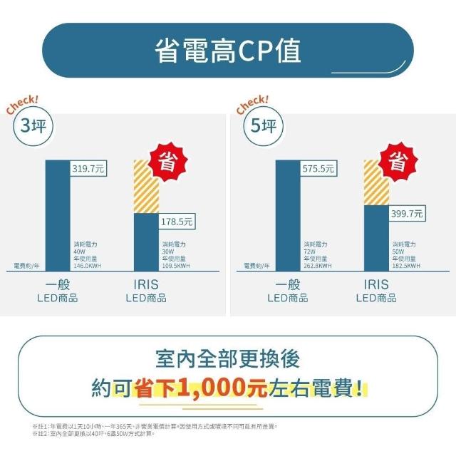- 燈泡壽命長,約可使用4萬小時